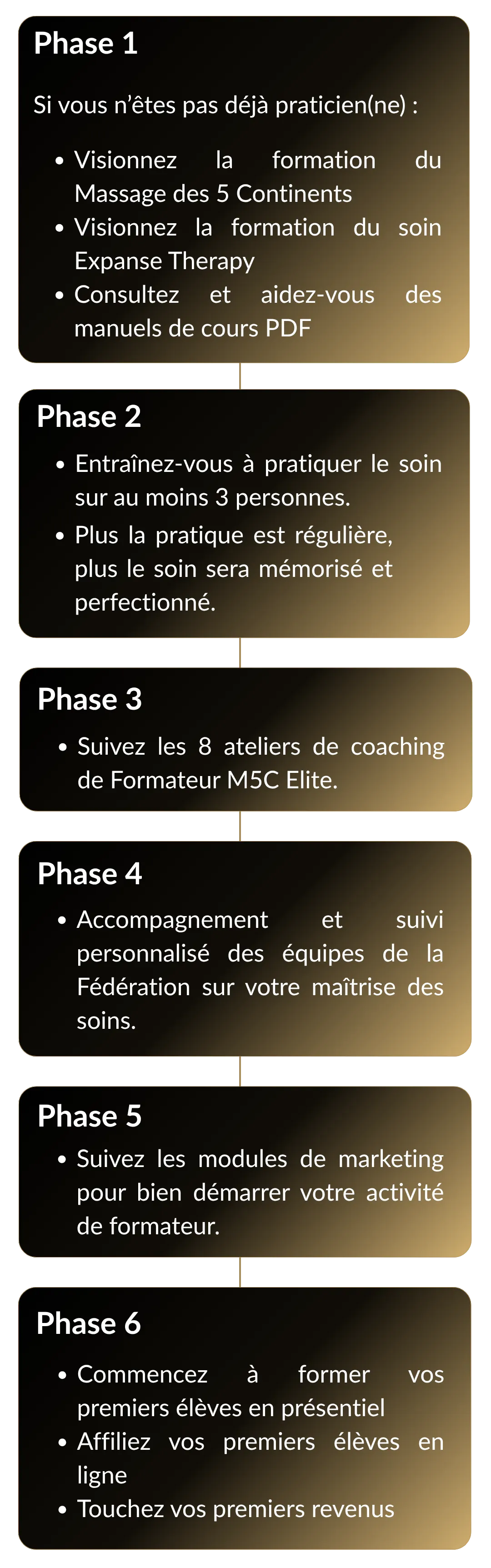 La seule formation qui vous guide pas à pas pour enseigner le Massage des 5 Continents et le soin Expanse Therapy avec confiance, impact et professionnalisme — même si vous partez de zéro.